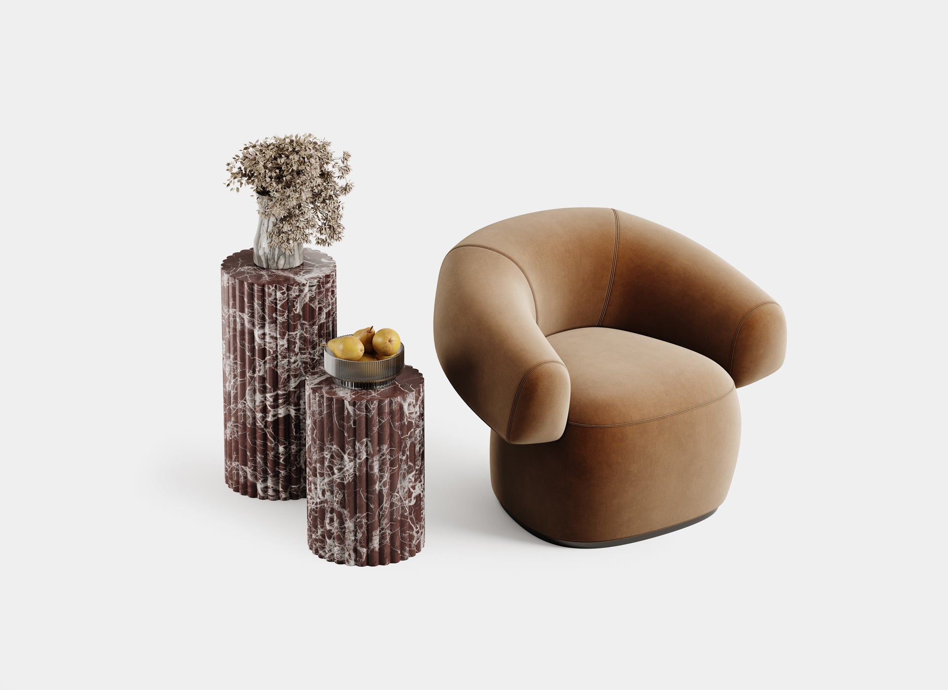 The Fluted Plinth offers a harmonious blend of function and aesthetics, designed to enhance the character of any room. Carved from globally sourced natural stones, this plinth is the ideal companion for contemporary and classic interiors alike, perfect for displaying plants, or as a functional side table.