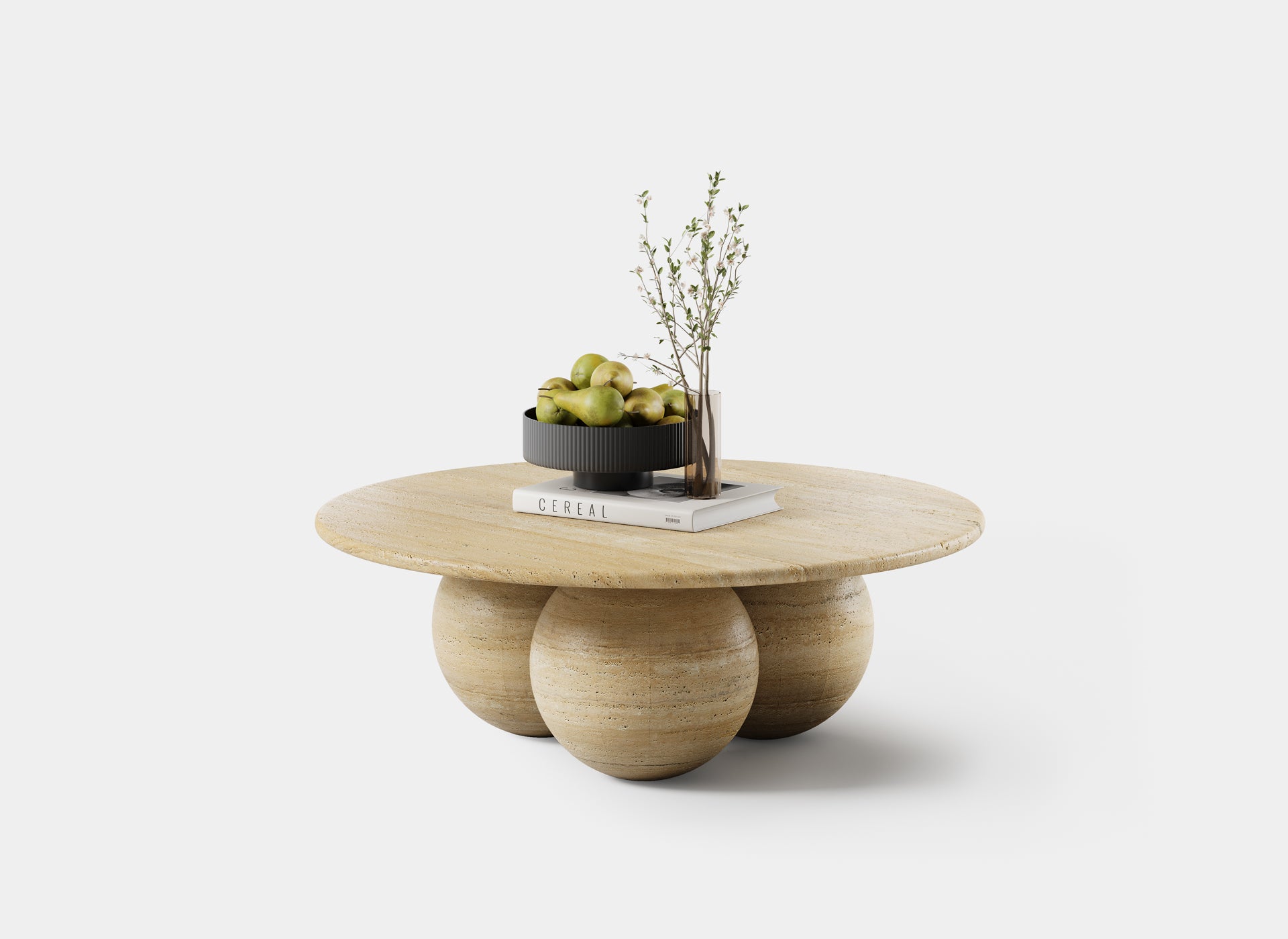Designed to make a statement, the Theo Coffee Table combines bold geometric shapes with the organic charm of natural stone. Its round tabletop rests gracefully on three perfectly formed spheres.